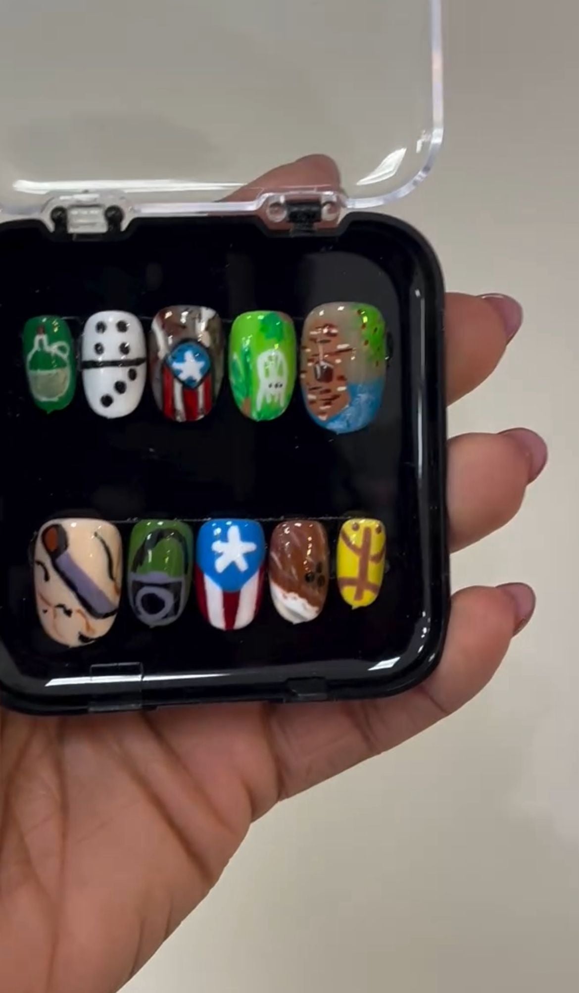 Luce el arte y la cultura de Puerto Rico en cada mano con este exclusivo set de Press On artesanales de Pheline Nails.